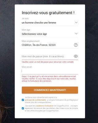 L’inscription est gratuite et se fait en moins d’une minute. La première chose à faire sera d’aller sur le site en question et d’y ajouter toutes les informations demandées : adresse mail, âge, type de rencontre voulu.